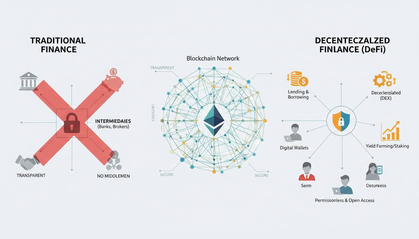 Traditional finance requires you to trust institutions to hold your money, process transactions, and provide services. DeFi removes this requirement by using cryptographic security and decentralized networks. When you deposit money into a DeFi protocol, you maintain control of your assets through your crypto wallet, not a bank account.