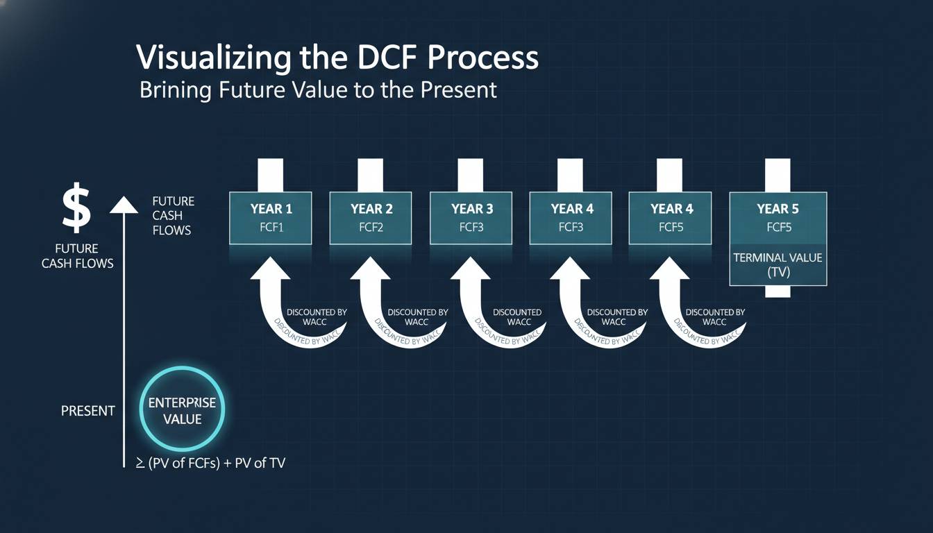 The discounted cash flow method values a business by estimating the cash it will generate in the future and then discounting that cash back to its present value. This sounds abstract, but the intuition is practical: a dollar earned five years from now is worth less than a dollar earned next year, because you could invest that dollar today and earn a return on it. DCF accounts for this time value of money explicitly.