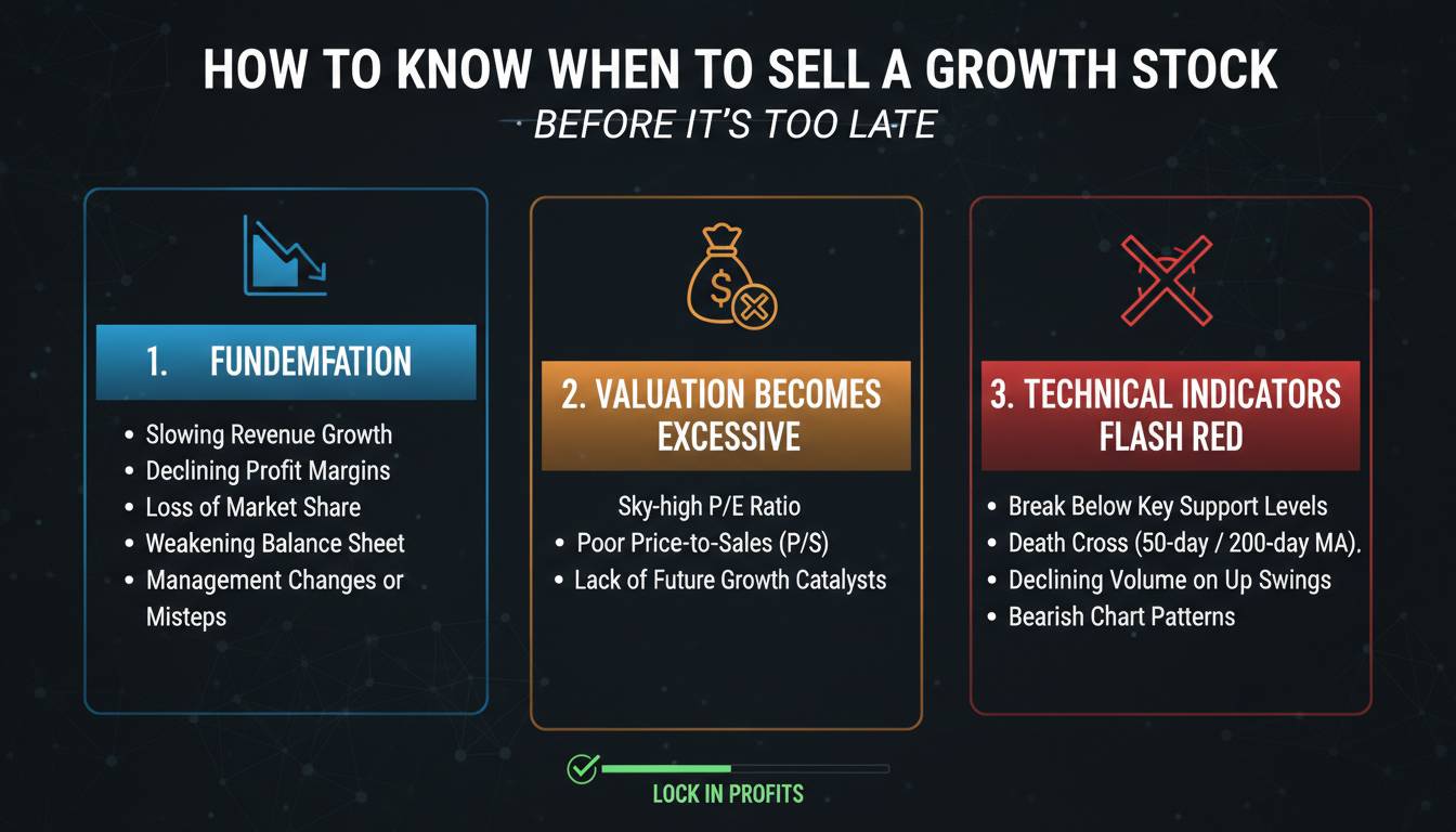 The truth about selling growth stocks is that timing matters less than having a system. You don’t need to catch the exact top. You need to recognize when the thesis that made you buy has broken. This article covers the key indicators that tell you when to exit a growth position—before the decline becomes irreversible.