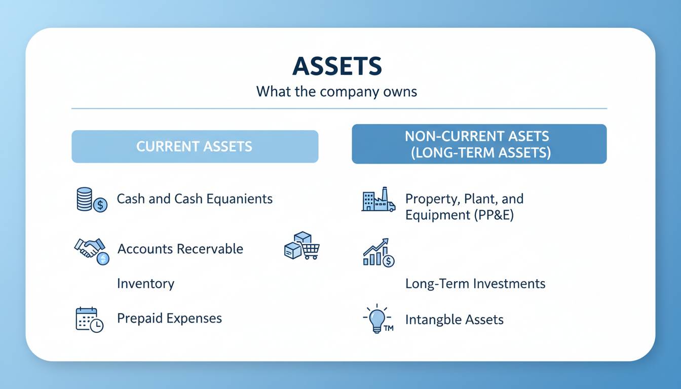 The key is understanding what types of assets a company has. A software company with mostly intangible assets (code, patents, intellectual property) operates completely differently from a manufacturing company with heavy equipment and inventory. The composition of assets tells you what kind of business model you’re looking at.