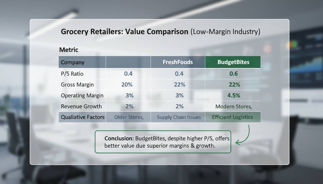 The key insight here is that P/S ratios vary dramatically by industry. A P/S of 1.0 might be outrageously expensive for a software company (where you’d expect higher valuations based on growth) and suspiciously cheap for a grocery chain (where the entire sector trades at lower multiples). Context matters—which is exactly why this metric deserves a closer look in low-margin sectors specifically.