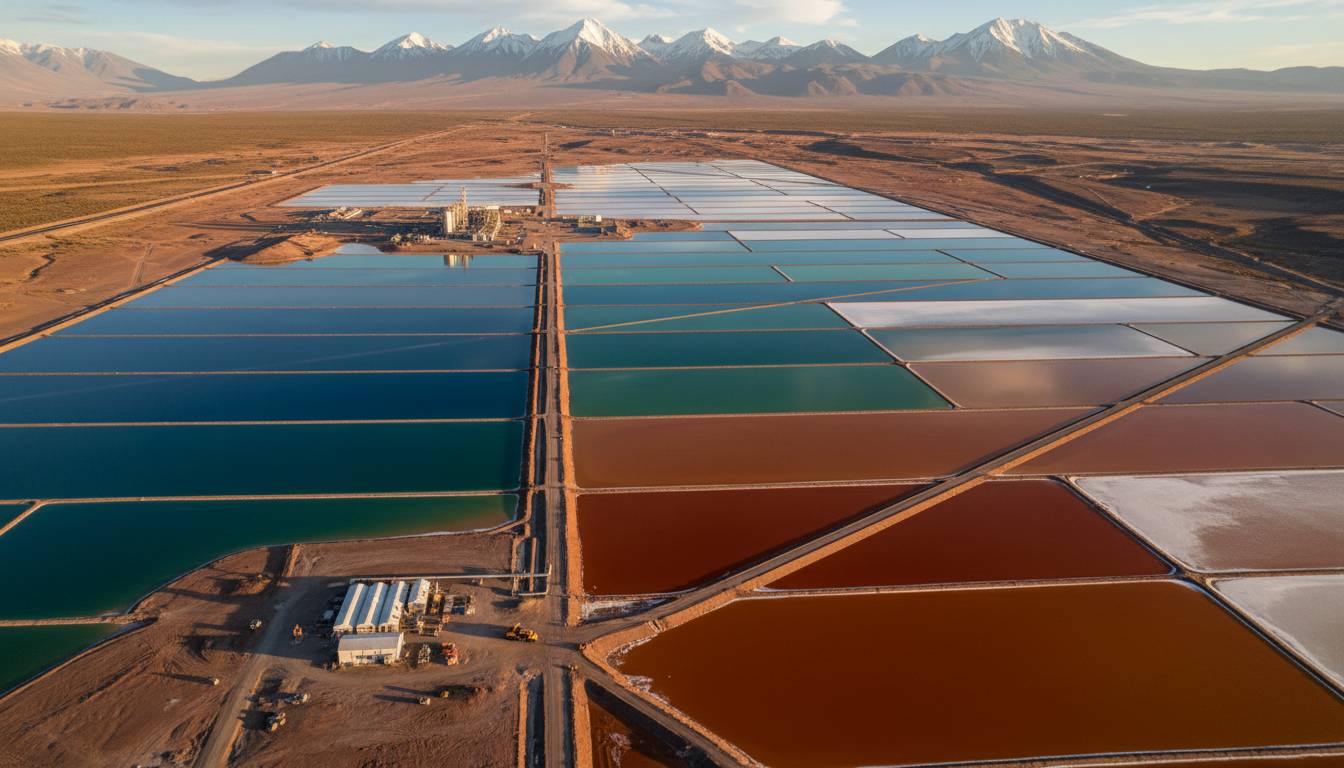 The process begins with drilling wells into subterranean brine pools. The lithium-rich water is then pumped to the surface into massive evaporation ponds. Over 12 to 18 months, solar energy gradually concentrates the brine as water evaporates, increasing lithium concentration from roughly 0.02% to over 6%. Once sufficiently concentrated, the lithium-rich solution undergoes further processing—typically through chemical precipitation—to extract lithium carbonate or lithium chloride.