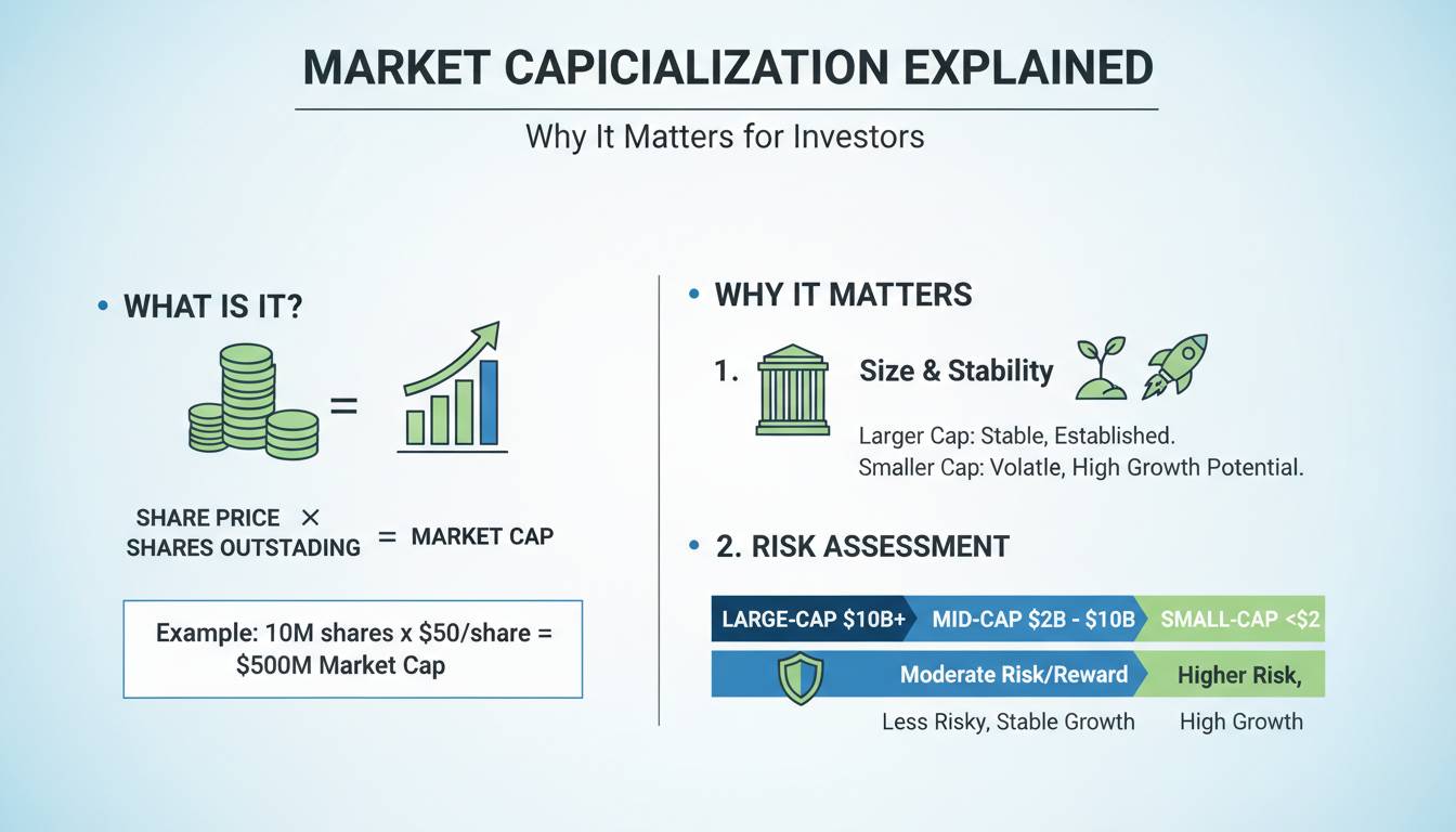 Market capitalization matters for three reasons: it determines your actual ownership stake, it signals risk and stability characteristics, and it determines which index funds and ETFs will hold the stock.