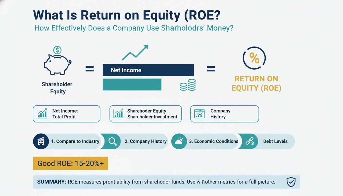 If you’re evaluating whether a company is worth your investment, there’s one metric that cuts through the noise faster than almost anything else: return on equity. ROE tells you how efficiently a company turns shareholder money into profit. It’s not perfect—no single metric ever is—but understanding it puts you months ahead of most casual investors who never bother looking past the stock price. This guide breaks down exactly what ROE means, how to calculate it, and most importantly, what numbers you should actually care about.