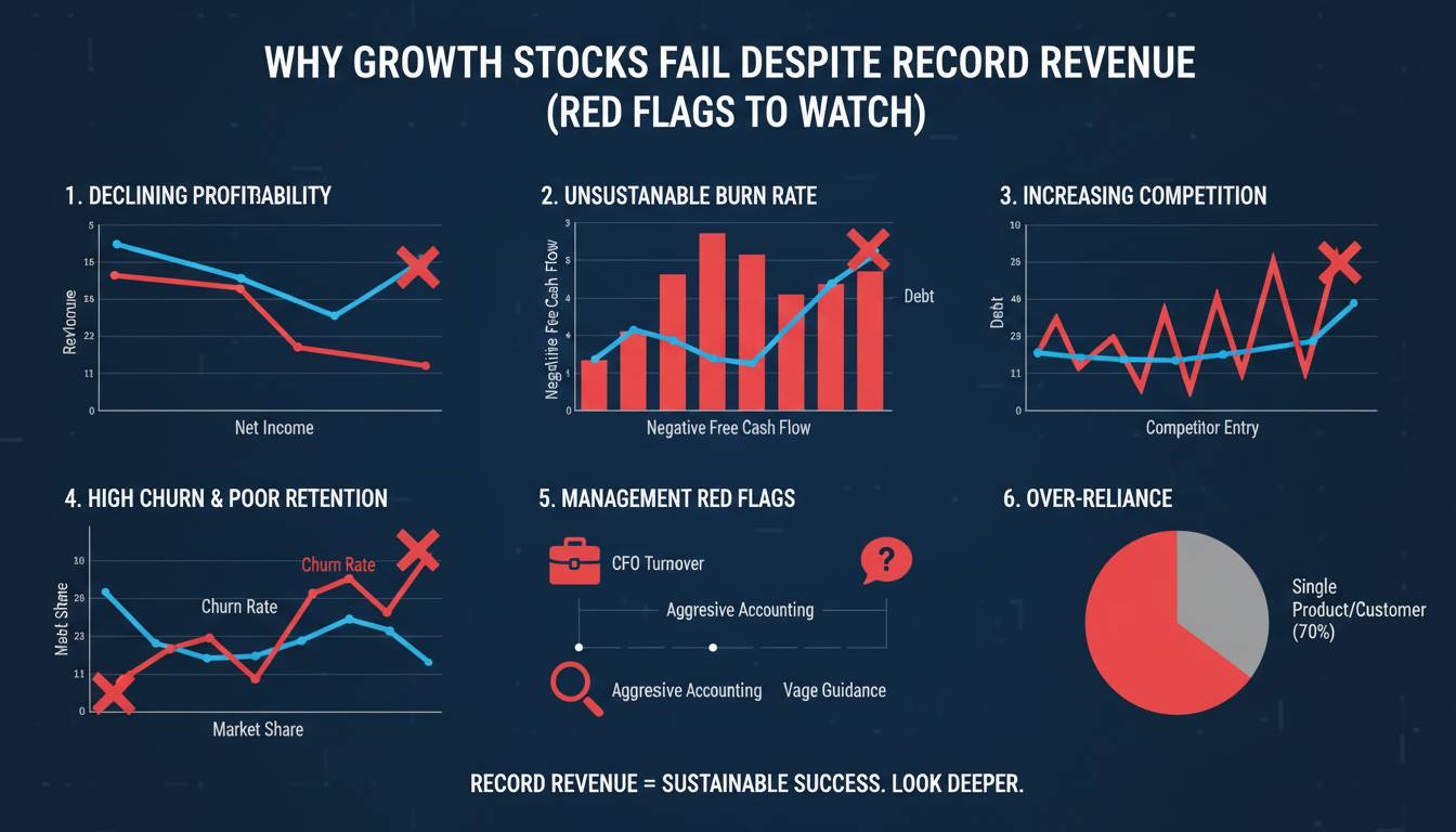 The framework for evaluating growth stocks isn’t complicated, but it requires discipline. Start with revenue, then immediately ask what the revenue story is hiding. Is cash burn accelerating? Are margins deteriorating? Is growth dependent on retaining specific customers? Are there structural competitive threats? Is the valuation assuming perfection? Is the capital structure creating risk?